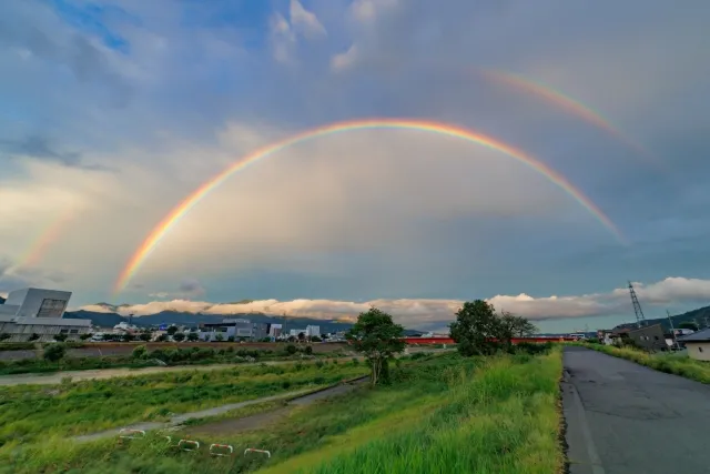 最も一般的に見られるのは「主虹」で、その外側に薄く、色の順番が逆転した「副虹」が見られることがあります。