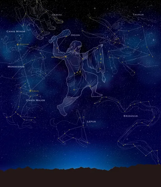 - オリオン座の“三つ星”を目印にすると見つけやすい。